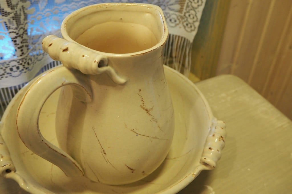 Kylpyhuone suihkuineen löytyi toki myös. Ja sama romanttinen linja jatkui myös täällä.