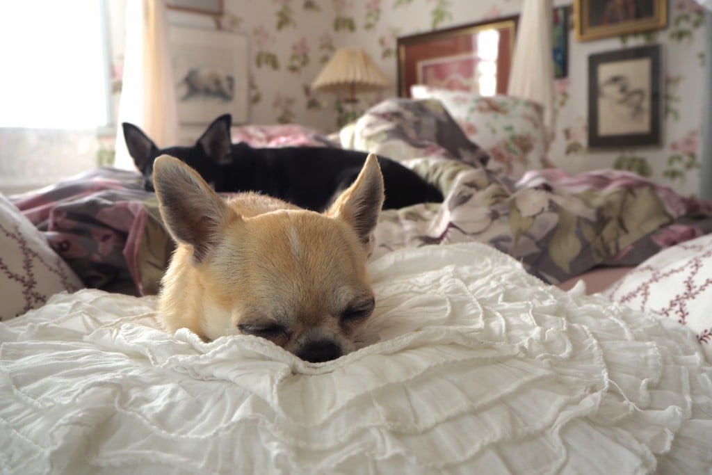 Etukäteen murehdin hieman sitä, miten koirat kahvilasta kuuluviin ääniin reagoivat ja onko koko visiitti pelkkää haukkumista ja koirien komentamista. No, ei ollut. Pojat käyttäytyivät mallikkaasti ja niinpä uskalsimme jättää heidät päivälläkin hetkeksi huoneeseen itsekseen. Illalla asiaa ei edes tarvinnut miettiä, koska koko talossa ei ollut ketään muita. Näinpä pääsimme ihan rauhassa ihmisten kesken illallistamaan ja pojat saivat sillä välin lepäillä huoneessa. Huippua!