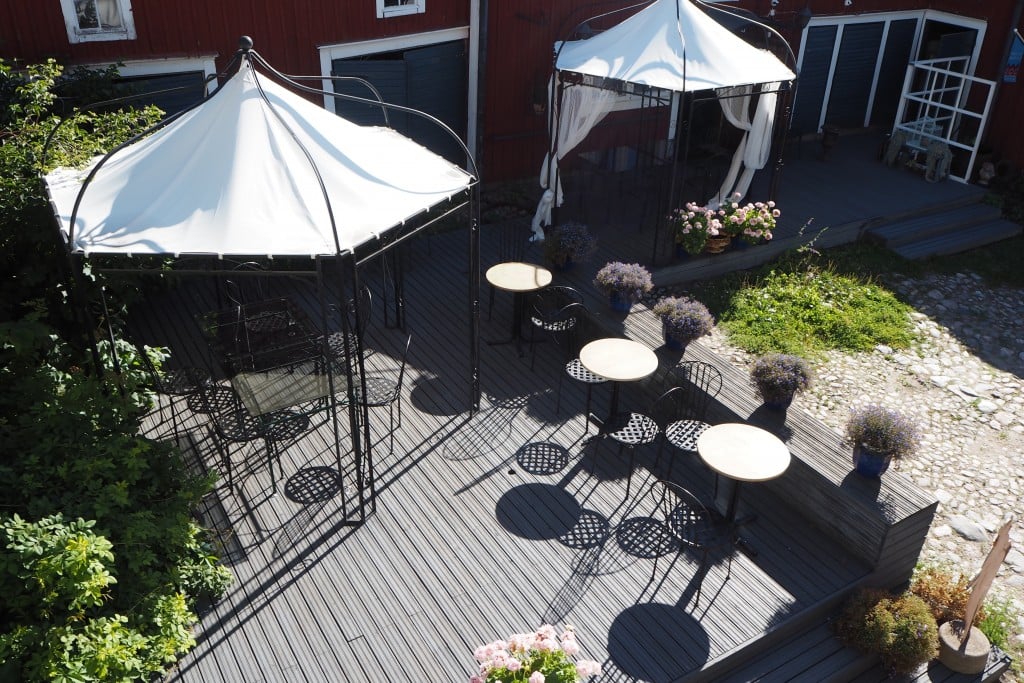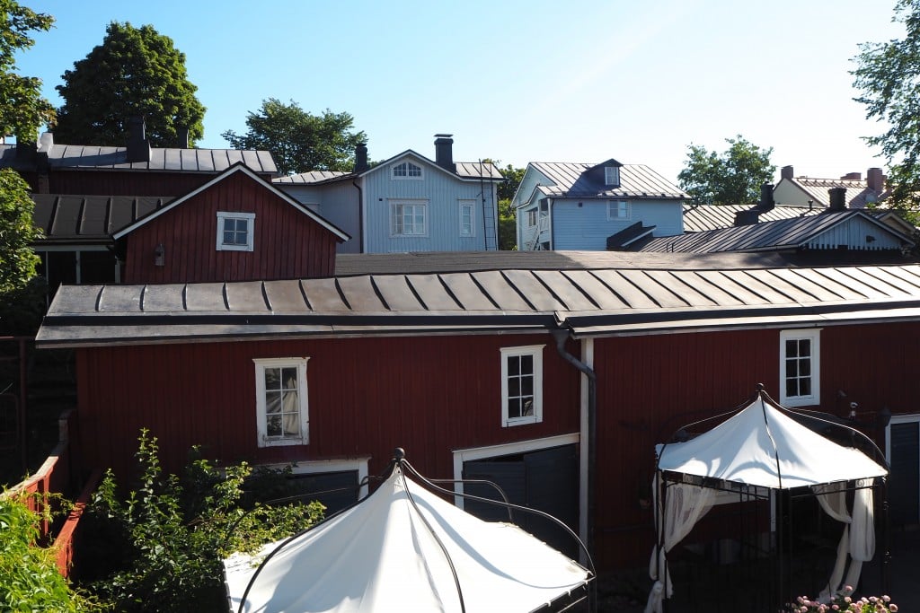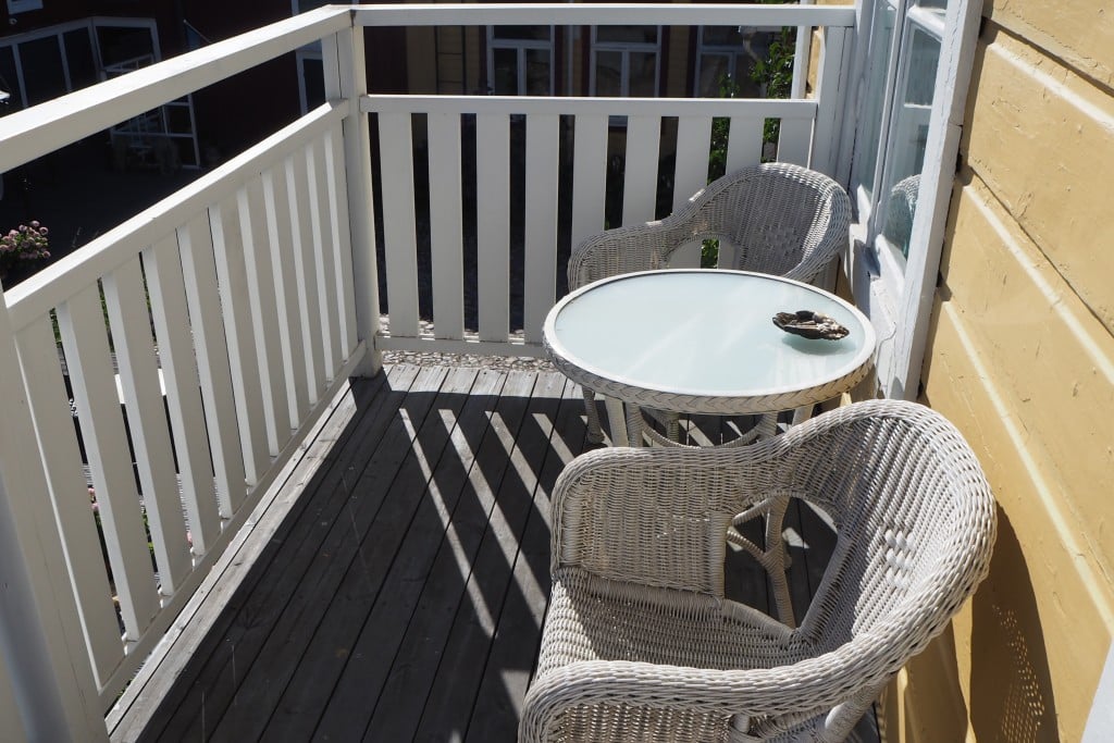 Näin kesäaikaan huoneistossa majoittuvien käytössä on lisäksi pieni parveke, josta oli kiva seurailla sisäpihan elämää ja ihailla muutenkin idyllistä Porvoota.