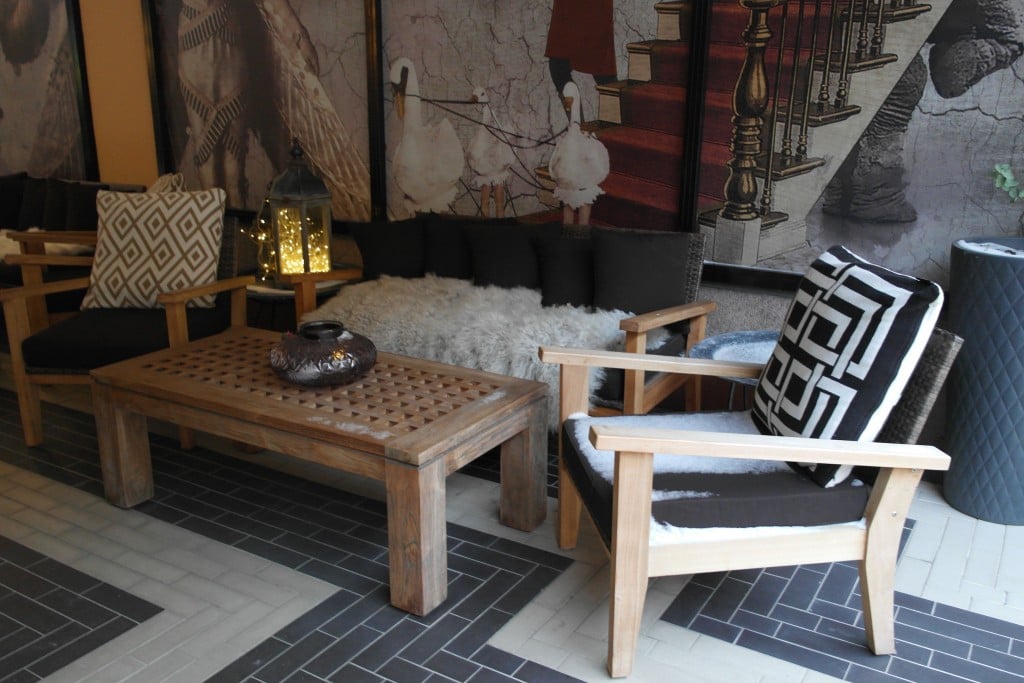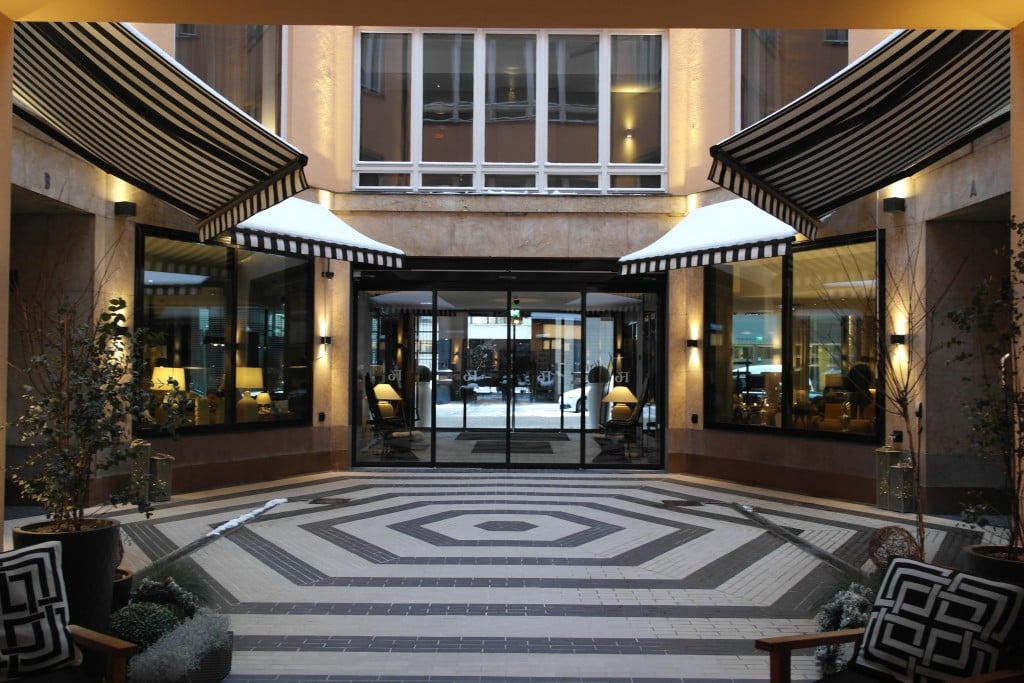 Ulkoapäin ei varmastikaan arvaisi, että hotellista löytyy myös ihanan viihtyisä sisäpiha, joka ei suinkaan ole käytössä vain kesäaikaan. Tunnelmaa oli luotu valoin ja kutsuvin taljoin, ja myös siis näin talviaikaan tänne kelpaa hyvin hetkeksi istahtaa tunnelmoimaan.