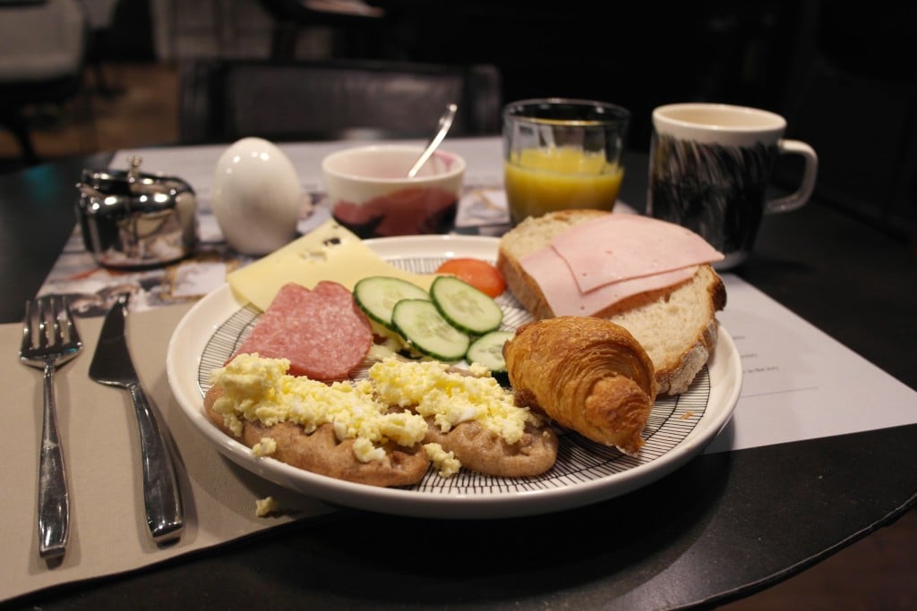 Hotel F6:n aamiainen koostuu pääosin orgaanisesta lähiruuasta. Ruoka on todella maukasta ja kauniisti esille laitettu. Omia suosikkeja olivat erityisesti nuo itsetehdyt karjalanpiirakat, leipä ja croissantit. Päälle vielä maukkaat lisukkeet ja jälkkäriksi hyvää jugurttia. Kyllä maistui, ja jälleen vähän liiankin hyvin!