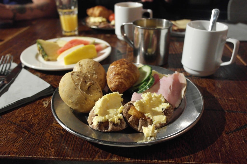 Me kävimme täällä sekä aamupaloilla että toisena iltana myös illallistamassa. Aamupalaa ei voi kun kehua, ja vankilatunnelmaan pääsee täälläkin halutessaan peltiastioita käyttämällä.
