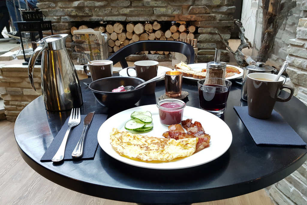 Myös aamupalalla oli löydettävissä Lapin makuja, eikä perinteisiä pekonejakaan onneksi unohdettu oltu. Kaiken kaikkiaan valikoima oli hyvä eikä mieluista syötävää kahdelle aamulle todellakaan ollut vaikea löytää.