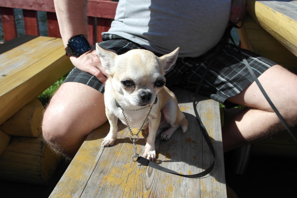 Tässä kohdin pidimme pienen omavaraisen juomatauon rannalla istuen ja maisemasta nauttien. Tai kovasti ainakin yritimme. Ricoa ei meinaan juuri leppoisa oleskelu kiinnostanut ja hän päätti sen sijaan keskittyä kaikille muille koirille räyhäämiseen. No, ei sinällään mikään yllätys tämä. Jos jollain on joku hyvä vinkki moisen käytöksen kitkemiseen, niin todella kiitollisena otamme kaiken avun vastaan!