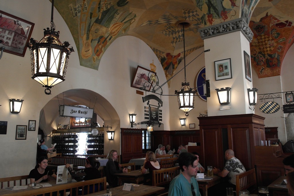 Hyvä ruoka ja olut. Perinteinen puhallinorkesteri nahkahousuisine soittajineen. Suurehko matkamuistomyymäläkin. SE paikka, joka Münchenissä on nähtävä. Suosittelen, mutta pienellä varauksella. Itse suosisin jatkossakin päiväsaikaa, illalla paikka lienee täpö täynnä ja tätäkin rauhattomampi. Näin ainakin veikkaisin. Jos terasille ei mahdu, kannattaa istumapaikka valita mahdollisimman perältä, ellei sitten halua syödä kameroiden kanssa ympärillä hyörivien turistien keskellä.