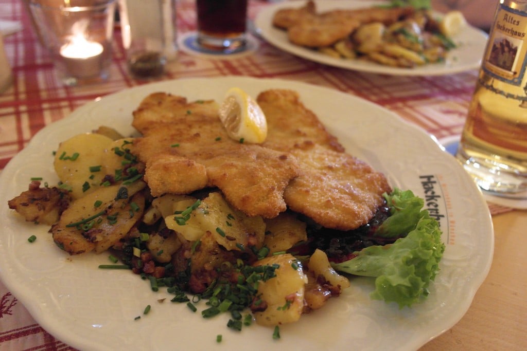 Hackerhaus on Hacker- Pschorr panimon pubi ja myös heidän oluensa oli matkan suosikki numero 2. Tykkäsin siis kovasti tästäkin! Täällä tilasin myös matkan toisen wieninleikkeen ja annos oli todella maistuva.