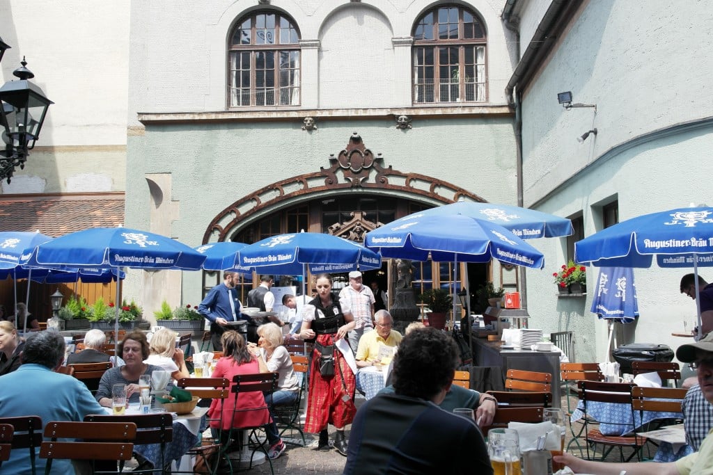 Aloitetaan tällä, omalla suosikilla numero 1. Augustiner löytyy helposti keskeltä kaupungin kävelyaluetta, upeasta vanhasta rakennuksesta. Sisältä paikka oli todella kaunis ja kaiken kruunasi takapihan tunnelmallinen atriumpiha. Missään nimessä ei siis kannata jäädä heti tuohon kävelykadun terasille, vaan käpytellä ihan perille saakka.