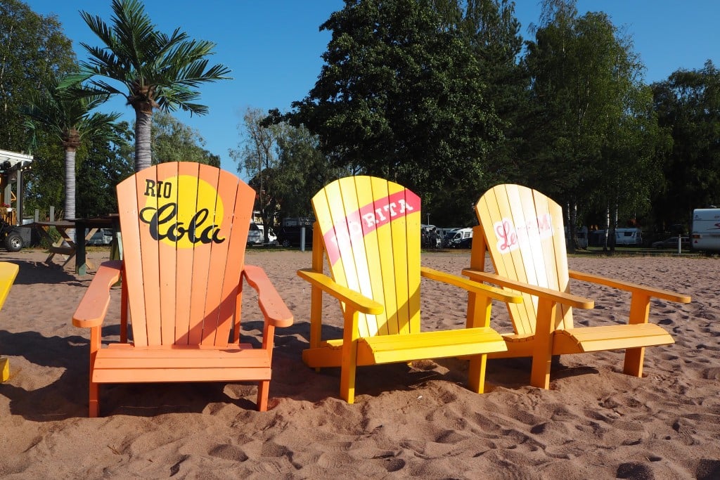 Poroholman uimarannalla voi rantatuoleissa tekopalmujen alla hetken aikaa kuvitella olevansa jossain kaukana muualla.