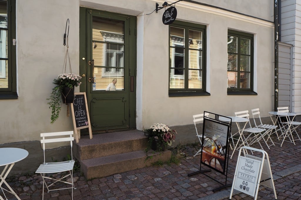 Jos edellisten jälkeen vatsasta vielä tilaa löytyy, tai haluat hypätä suoraan jälkkäriin, ota suunnaksi hurmaava PetriS Chocolate Room. Täältä löydät ihanat kakut ja käsin tehdyt suklaat, joita kannattaa myös kotiinviemisiksi ostaa.