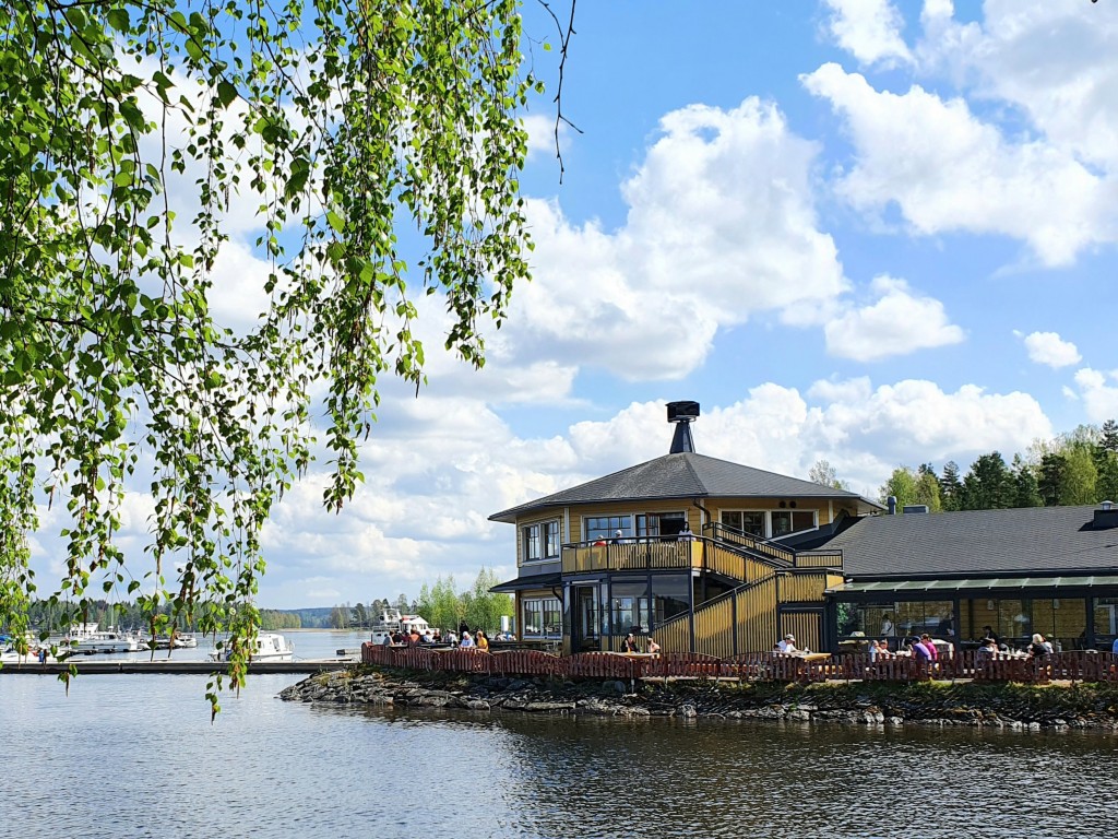 Täältä käsin on helppo seurata kesäistä veneliikennettä ja ihailla upeaa järvimaisemaa, sekä ottaa samalla muutama vilvoittava juoma. Nälän yllättäessä tarjolla on mm. pitsaa ja dippikoreja. Lisäksi vaihtuva lounas päivittäin.