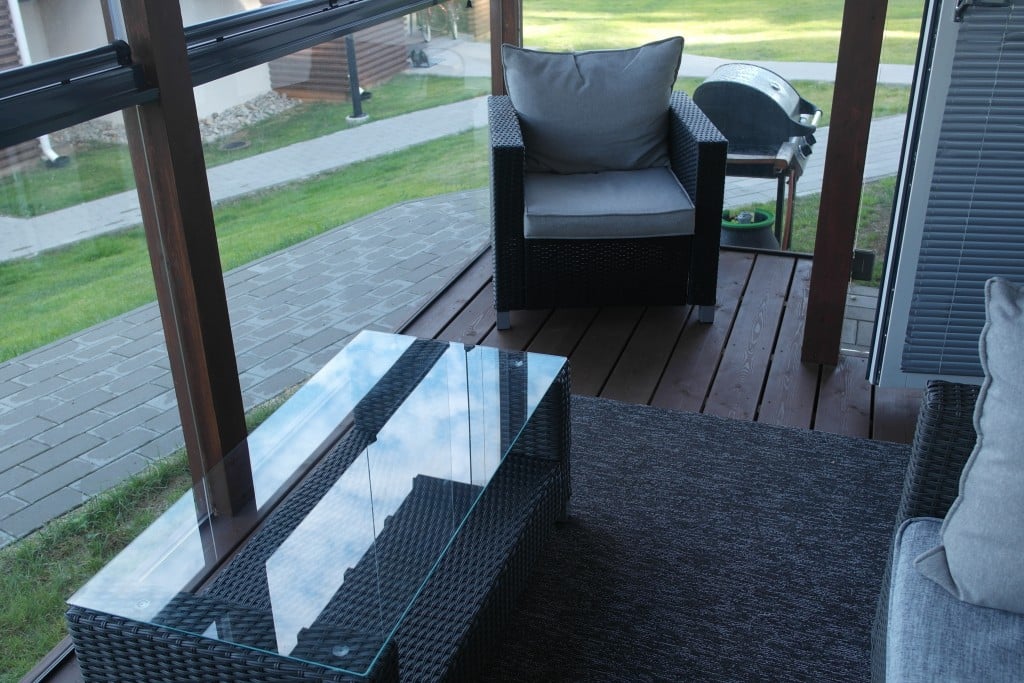 -lasitettu terassi, minkä johdosta huoneiston oven voi pitää auki